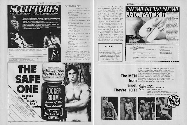 From Poseidon and Zeus to Dionysus and Apollo, Greco-Roman mythology is full of figures who express a fluid sexuality. It is this fluidity which Jeremy Hughes explores in his article contained within the July/August 1978 edition of In Touch (which has been broken into two parts) as he attempts to decipher homoerotic undertones in Classical Mythology. Also contained in the first half is a travel guide to Hawaii, a showcase of Forrest G. Hooper's artwork, and a photospread of model Mark White.